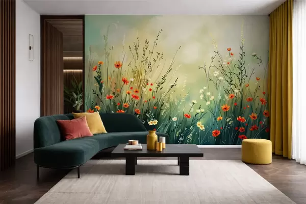 Wall murals Meadow flowers and grasses in soft painterly style Nr. w05015