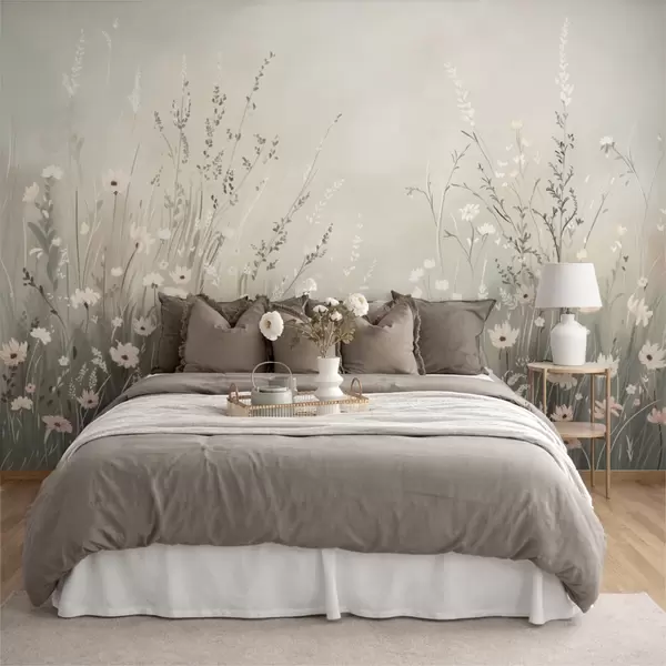Wall murals Soft meadow scene with white flowers and delicate grasses Nr. w05015v1