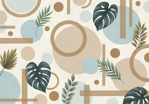 Wall murals Geometric pattern with leaves and circles in calm tones Nr. w05018