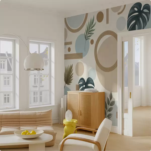 Wall murals Geometric pattern with leaves and circles in calm tones Nr. w05018