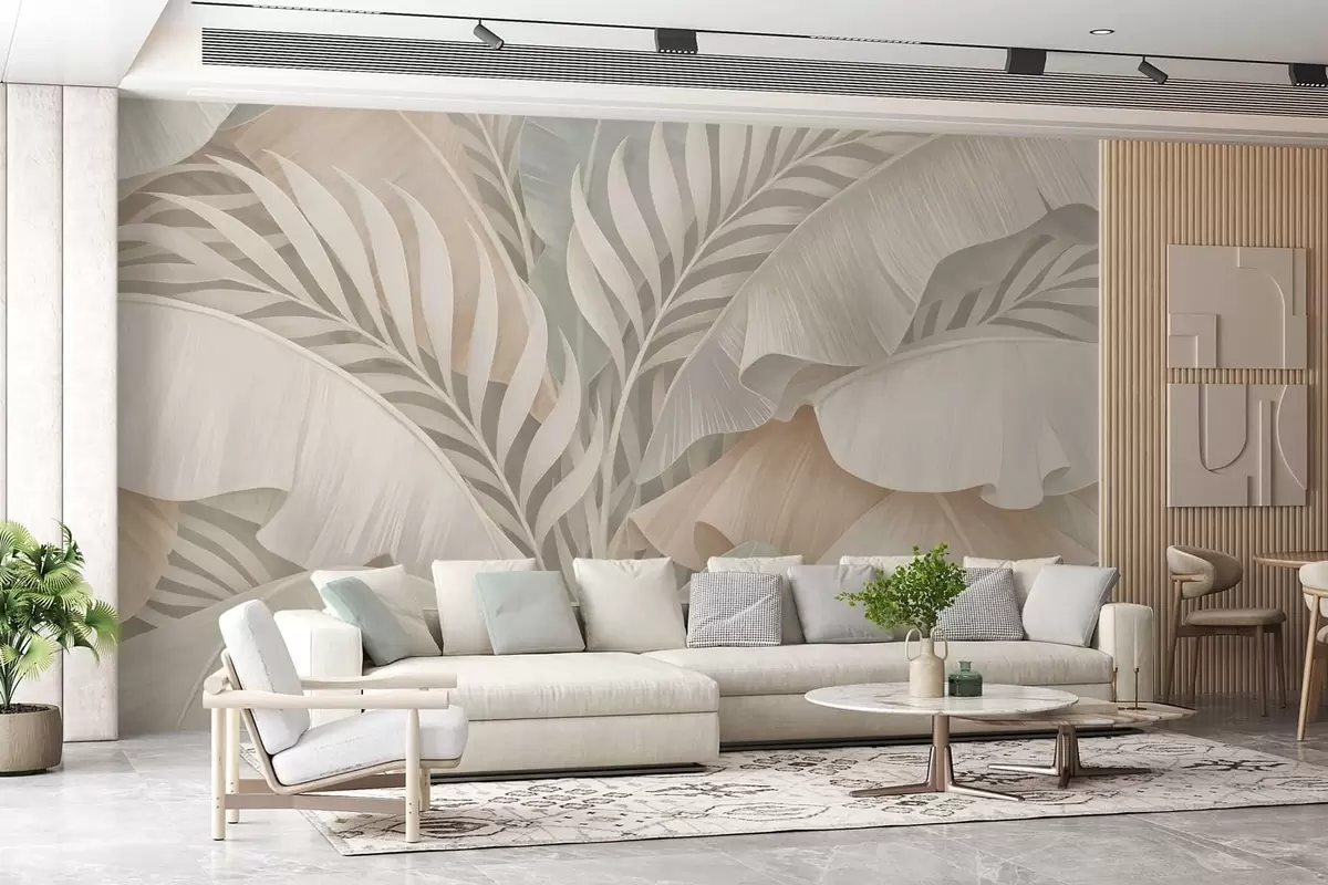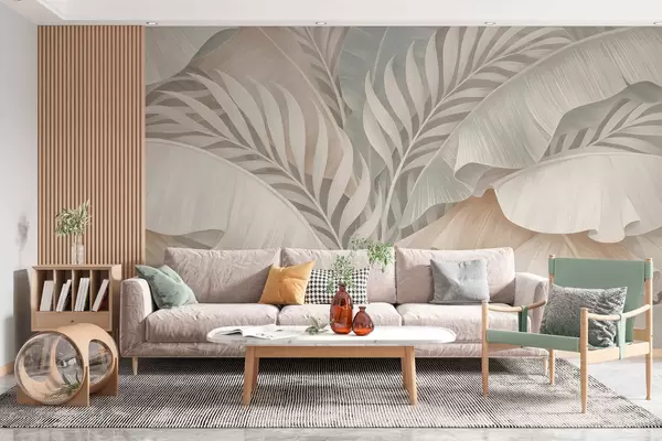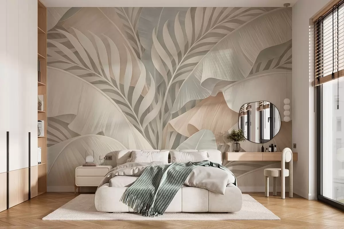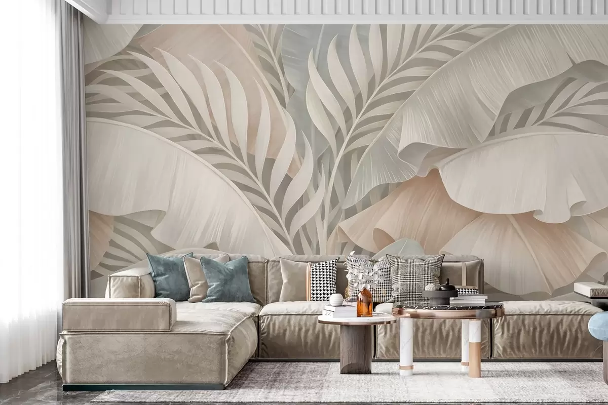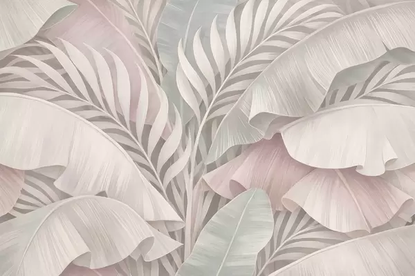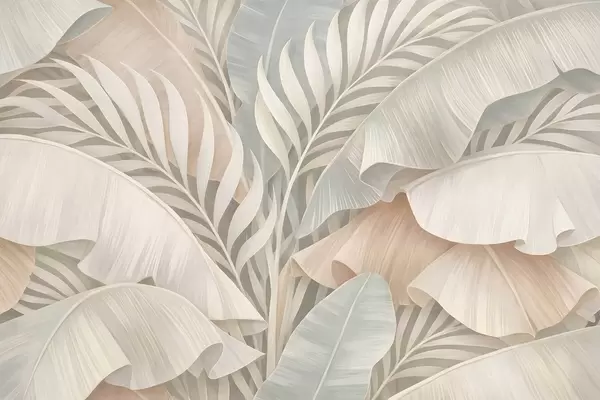 Wall murals large tropical leaves in shades of peach and dull turquoise Nr. w05062