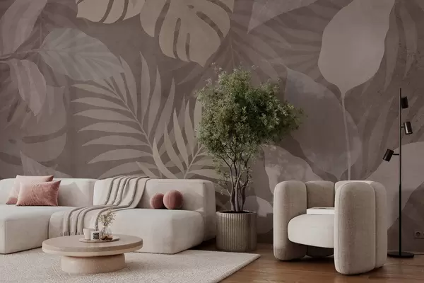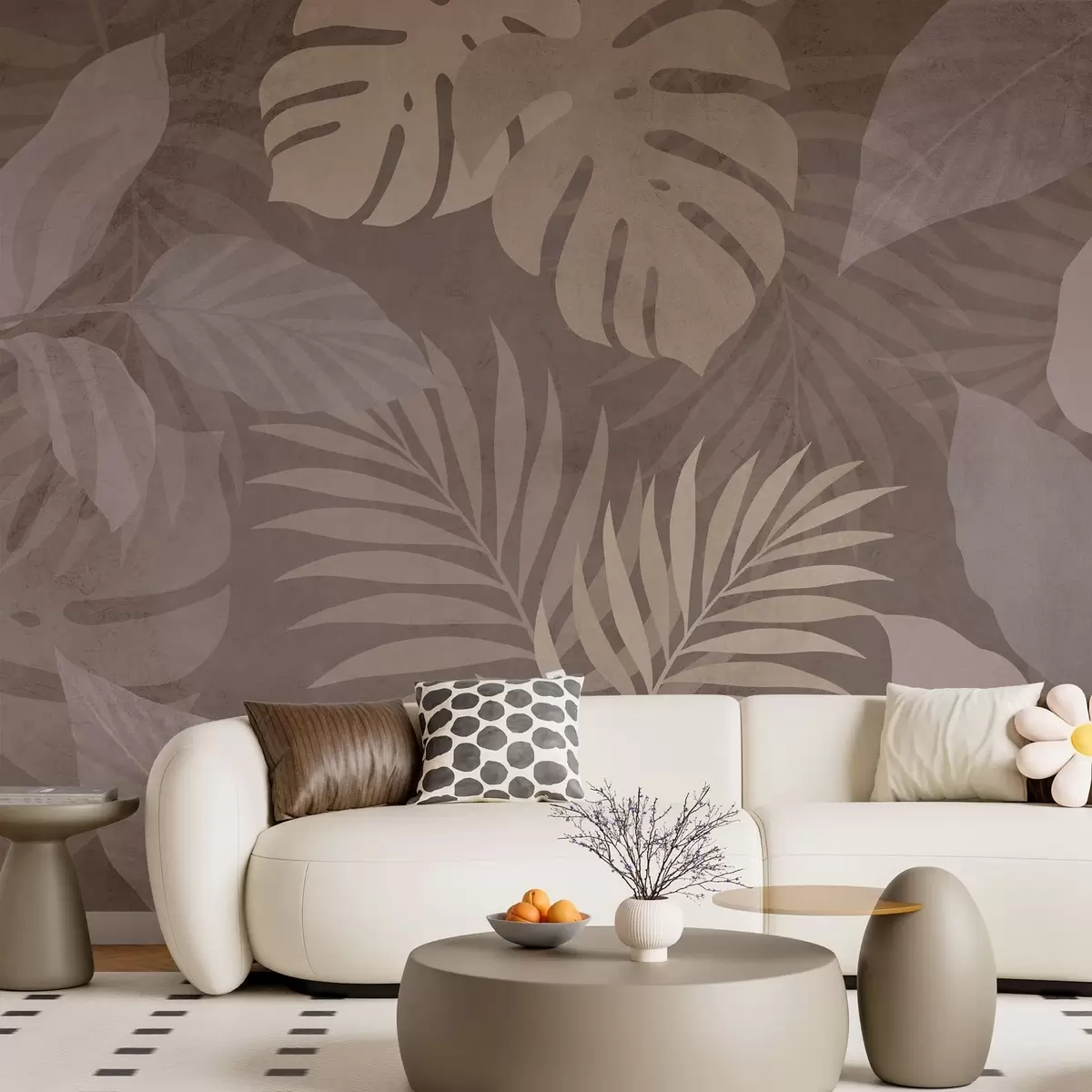Wall murals textured tropical leaves on a chocolate background Nr. w05063v2
