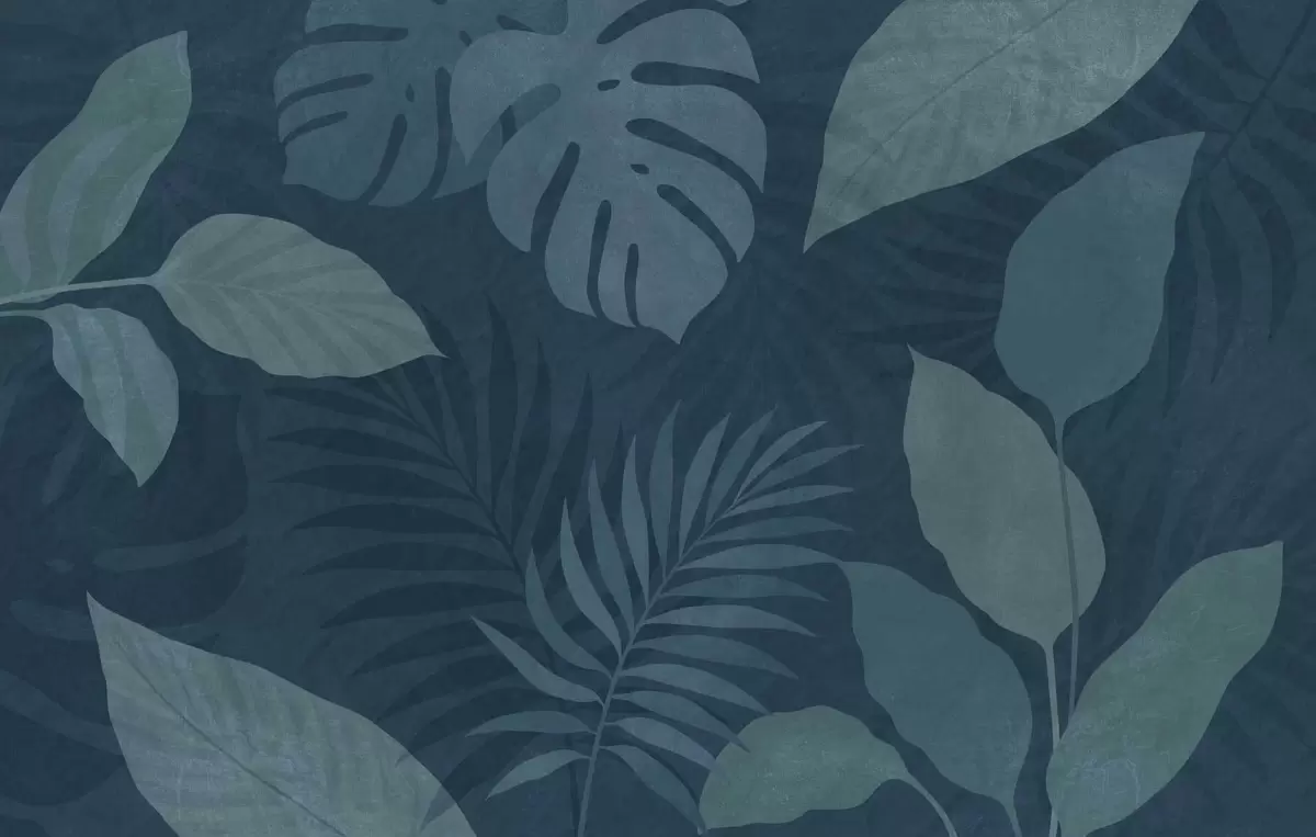 Wall murals textured tropical leaves on a dark blue background Nr. w05063v3