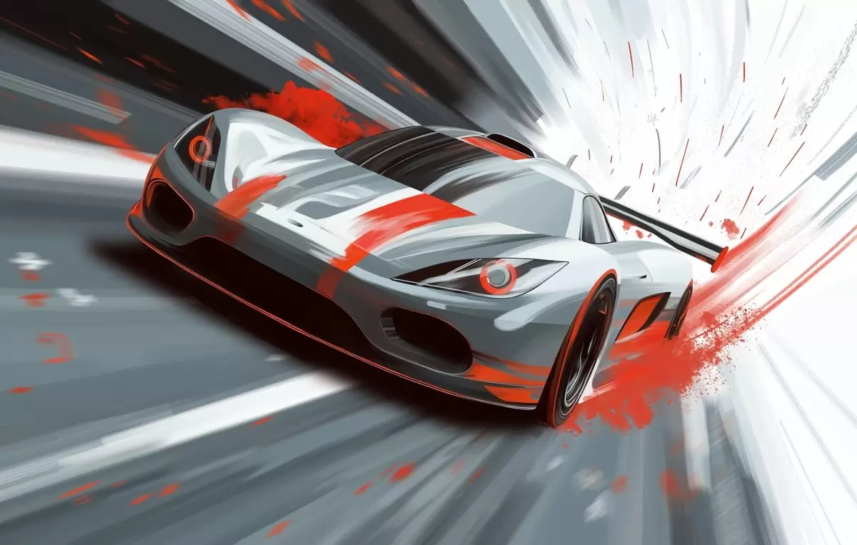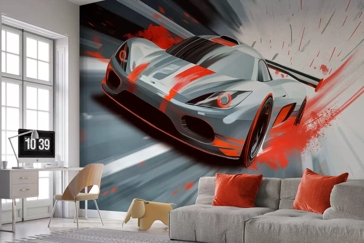 Wall murals dynamic sports car in digital drawing style with red accents Nr. w05069v1