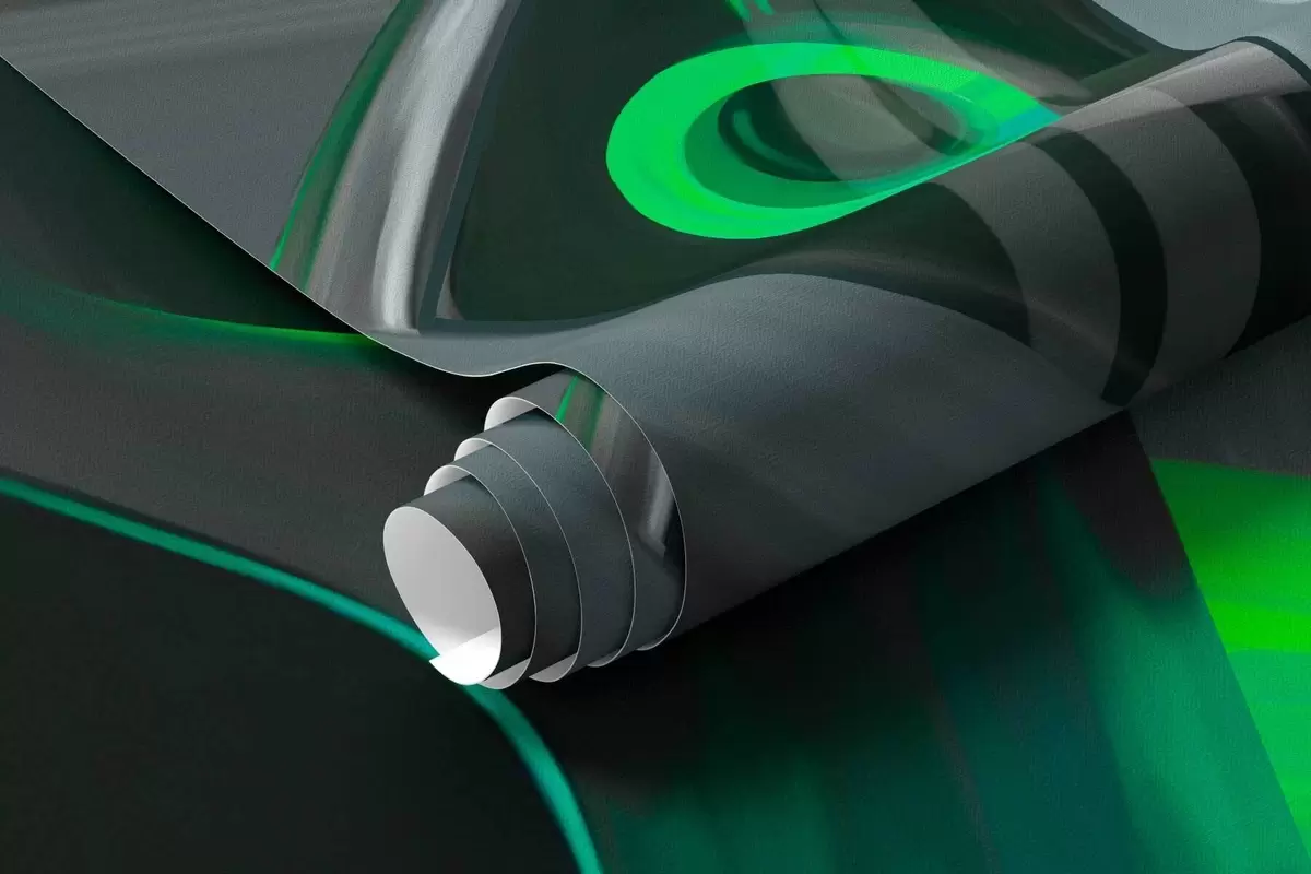 Wall murals dynamic sports car in digital drawing style with green accents Nr. w05069v4