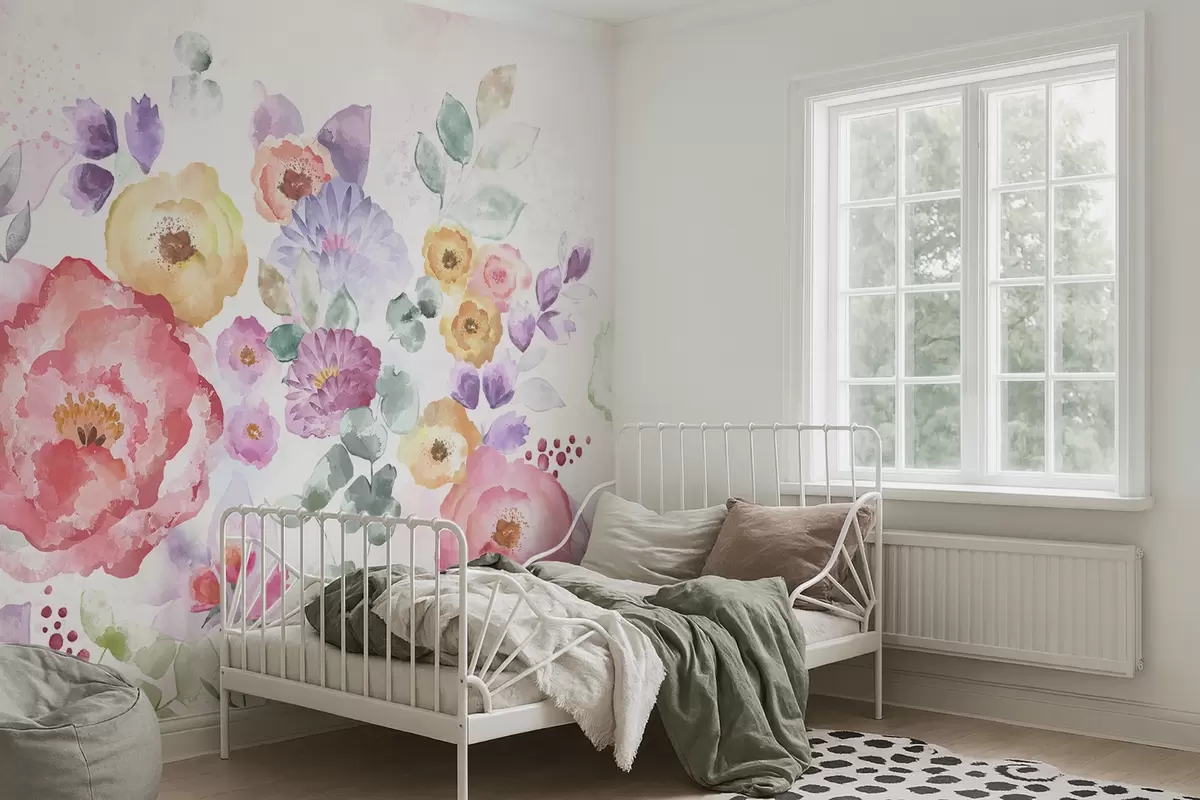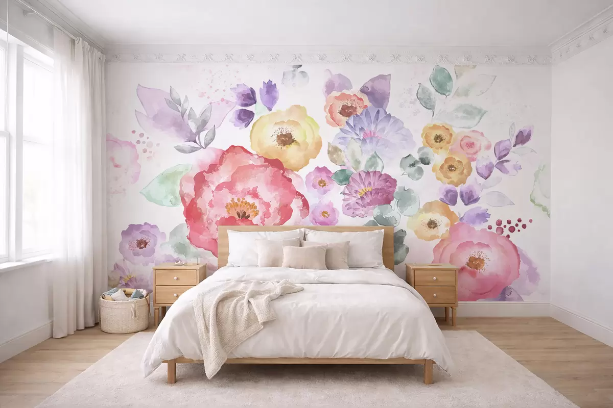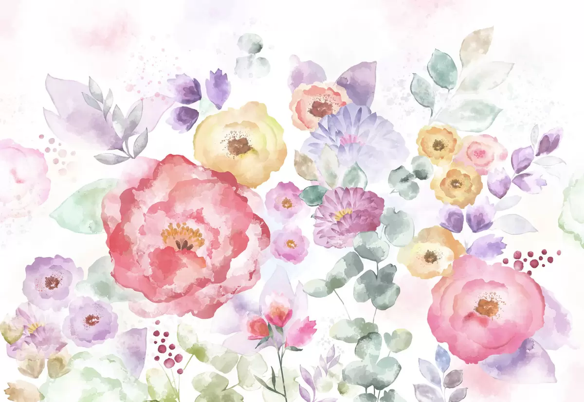 Wall murals Pastel watercolor flowers on a light background Nr. w05093v1