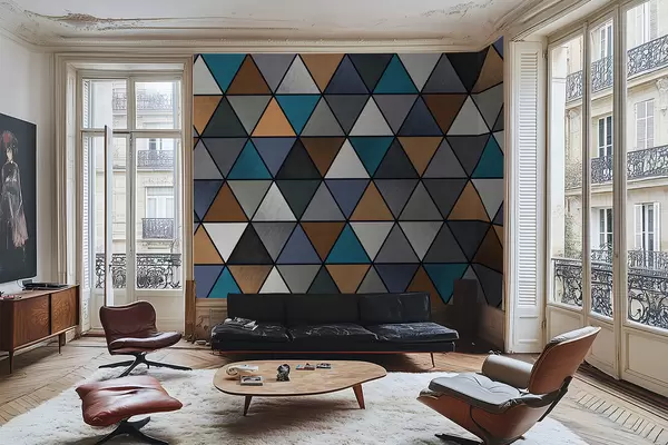 Wall murals Triangular geometric pattern in blue and warm tones Nr. w05095