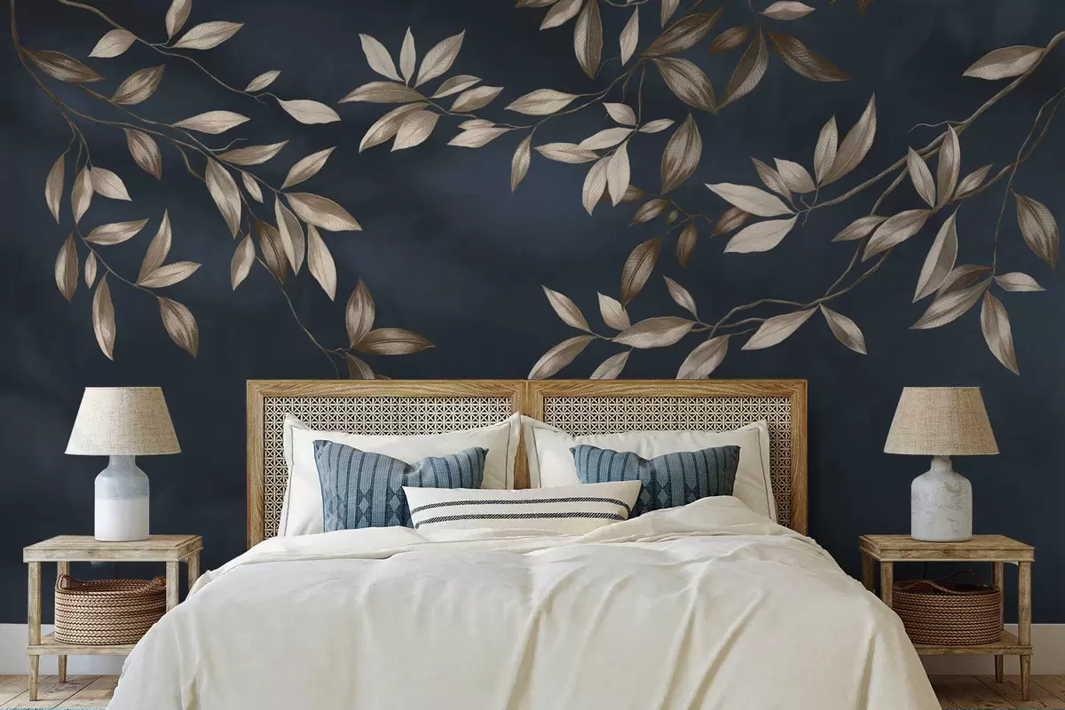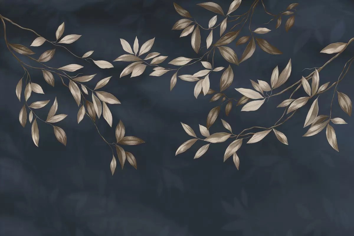Wall murals Decorative leafy branches on a deep blue background Nr. w05113v1