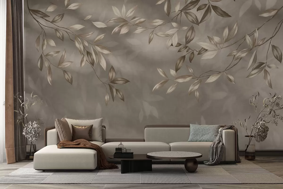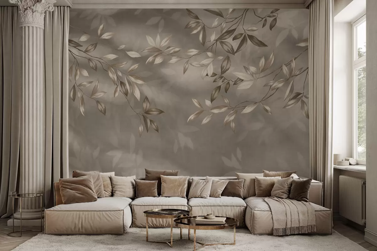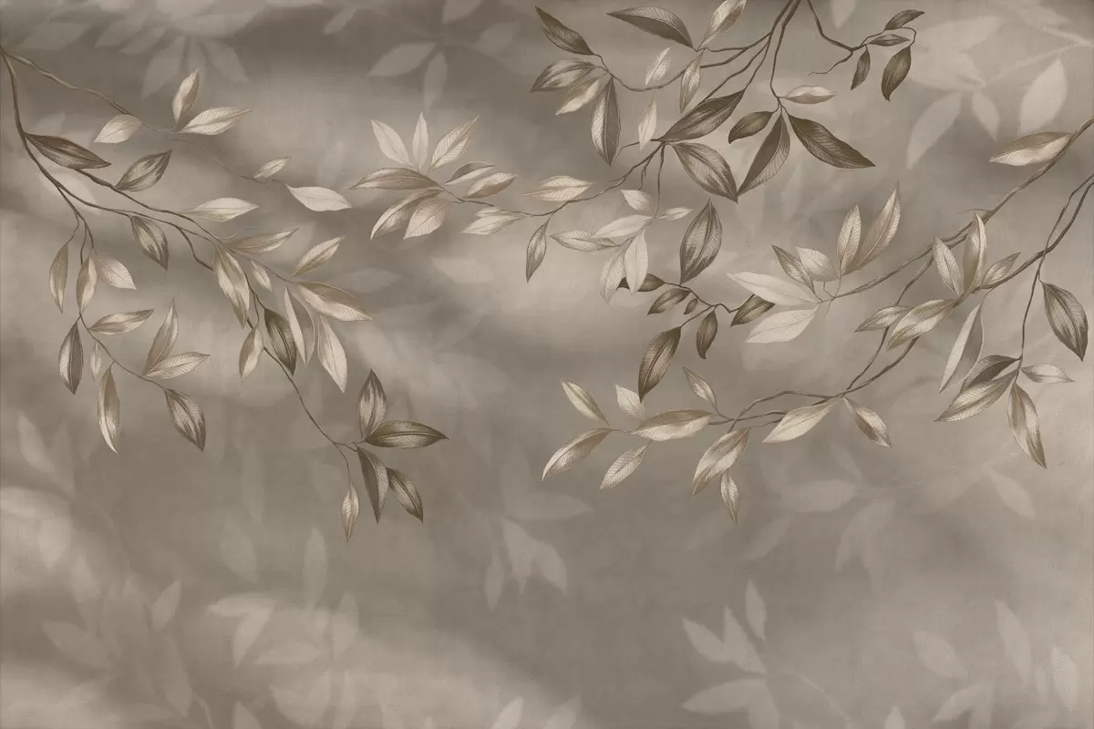 Wall murals Delicate leafy branches in beige tones on a light background Nr. w05113v2