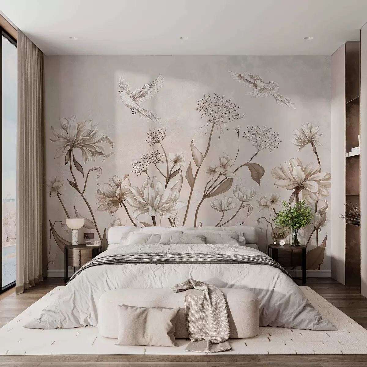 Wall murals Light flowers and birds on soft background Nr. w05118