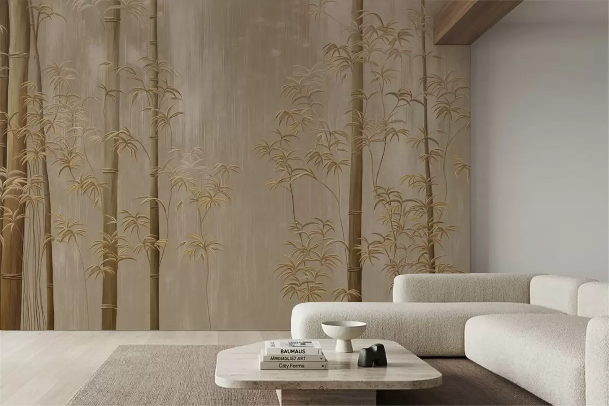 Wall murals Beige bamboo with thin stems Nr. w05120v2