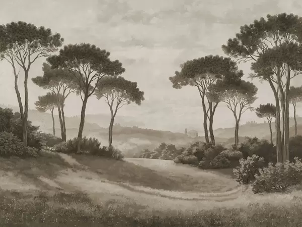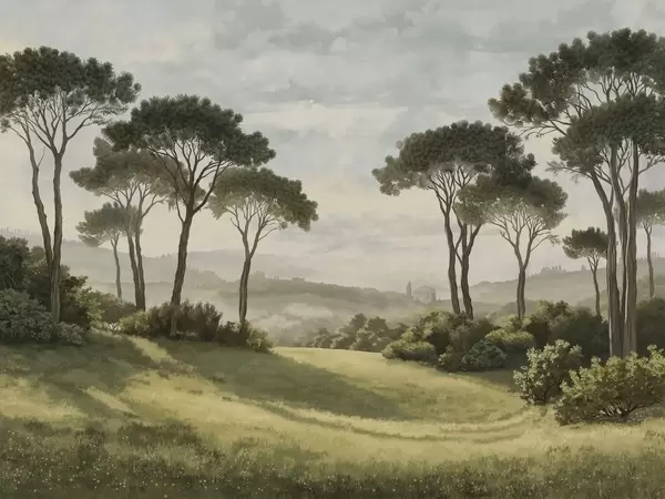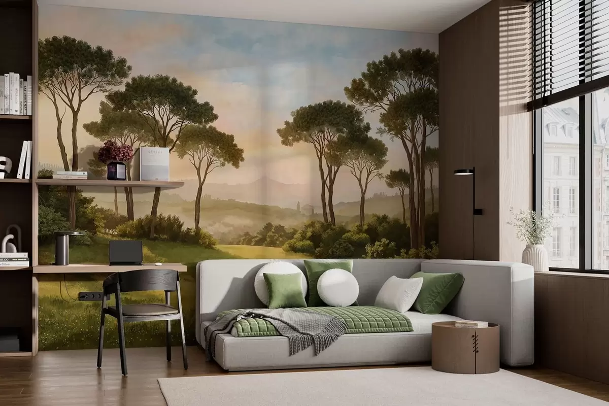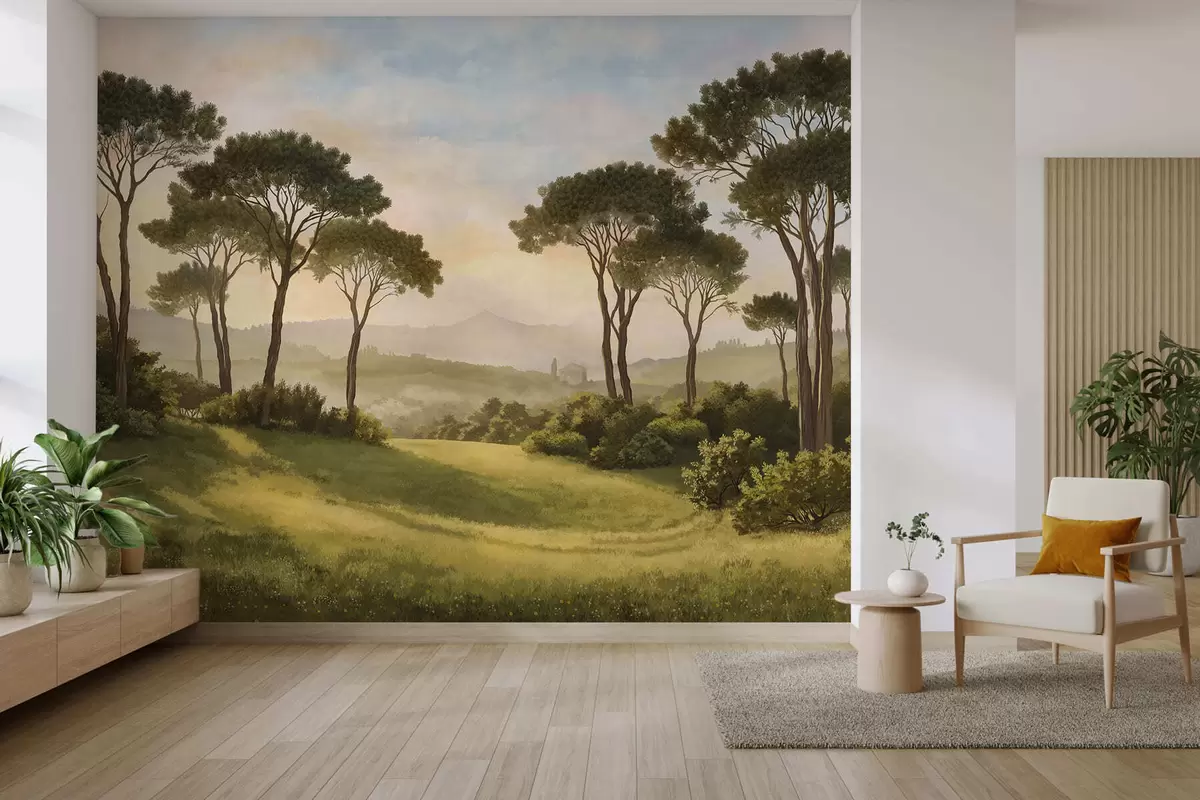 Wall murals Landscape with trees in warm sunset light Nr. w05122