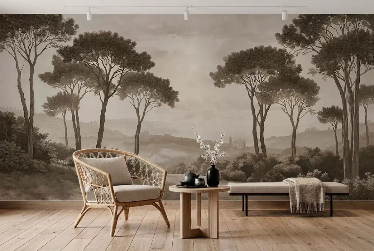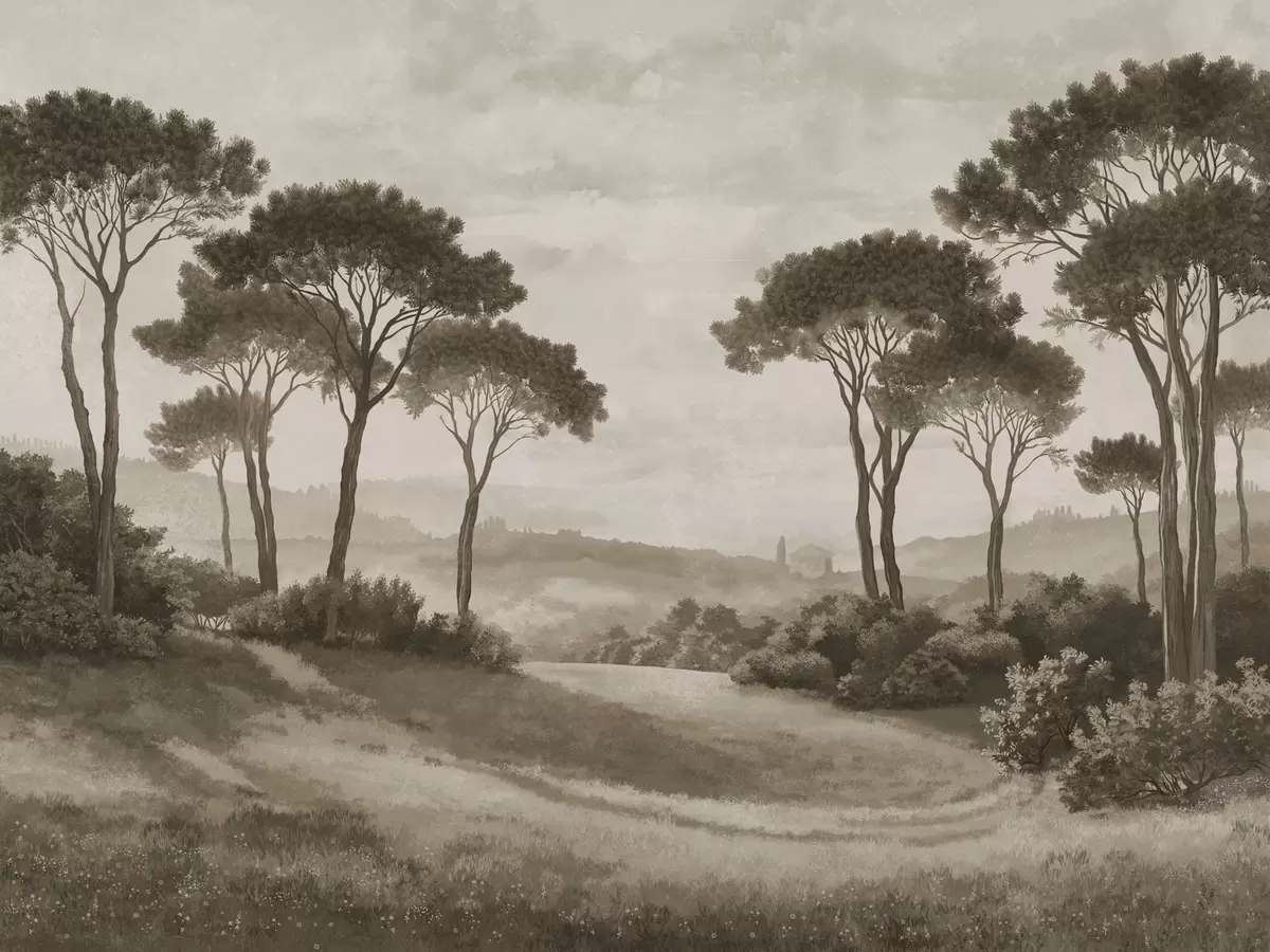 Wall murals Landscape with trees in vintage sepia tone Nr. w05122v2