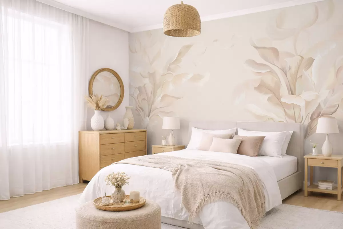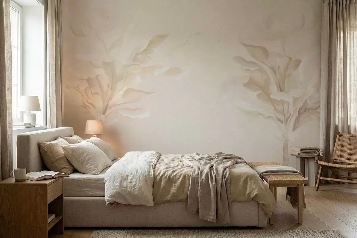 Wall murals Airy decorative plants in warm creamy tones Nr. w05126