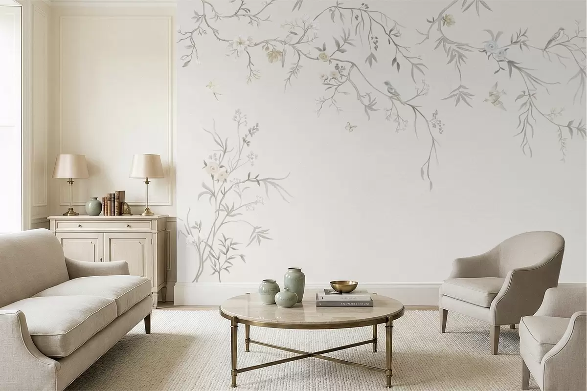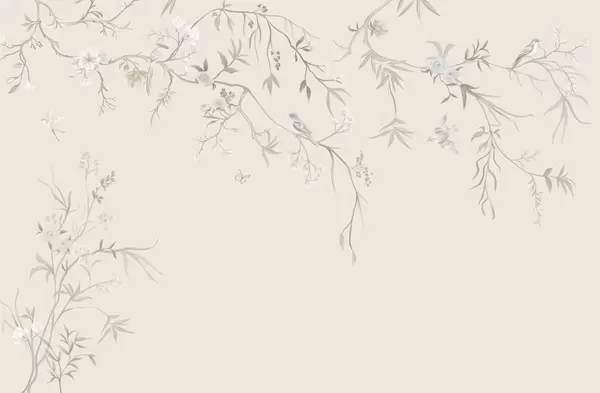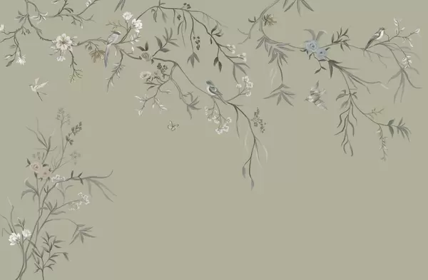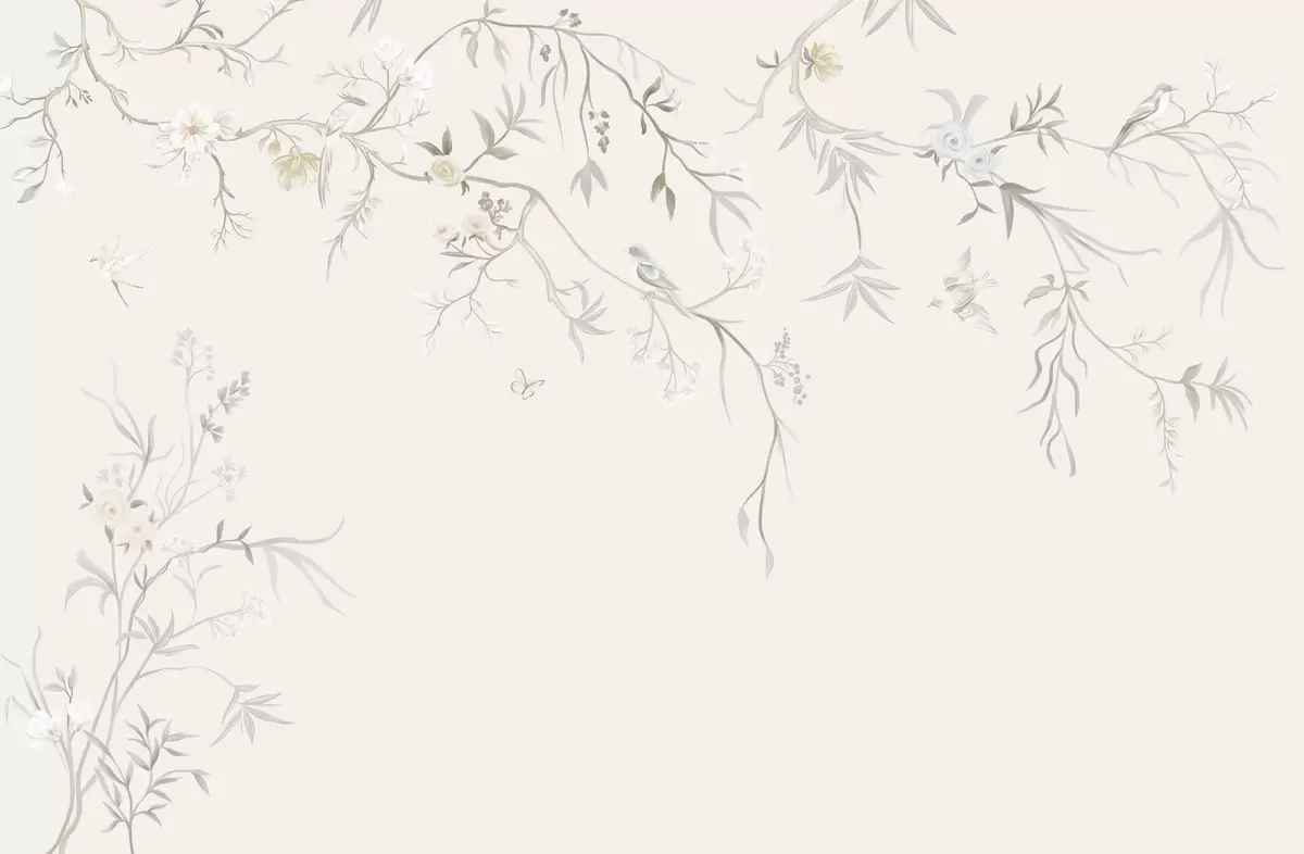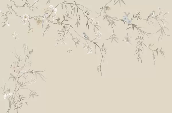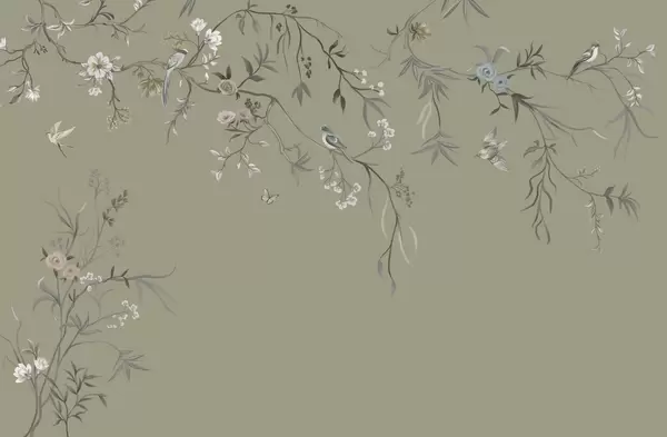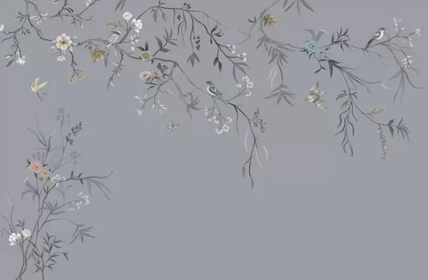 Wall murals Delicate flowers and birds on a chalk background Nr. w05127