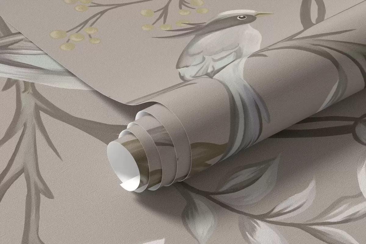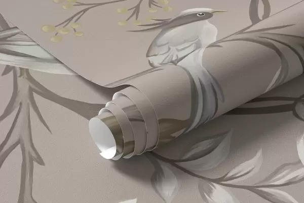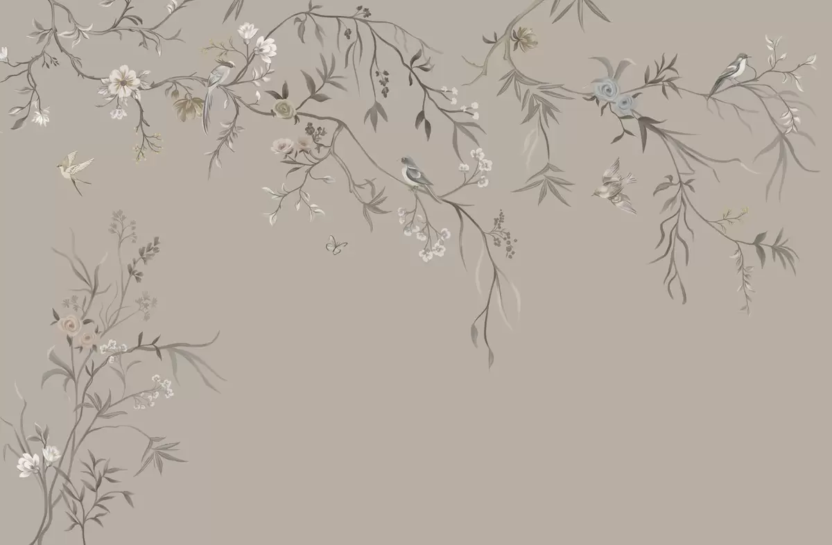 Wall murals Floral ornament with birds on neutral background Nr. w05127v3