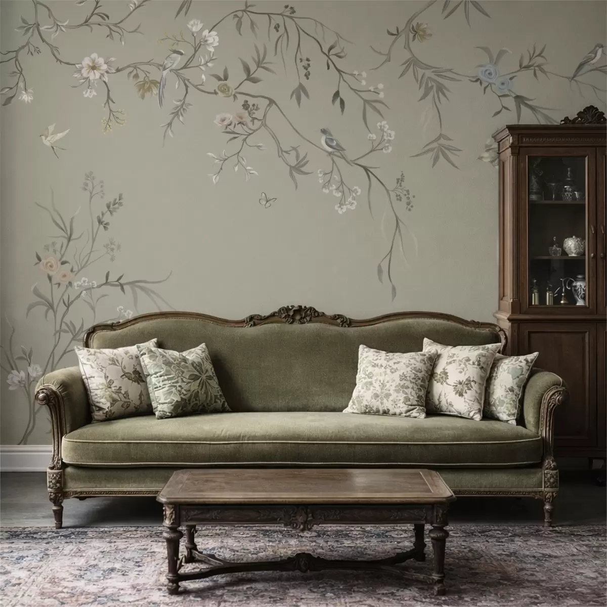Wall murals Floral pattern with birds on cool background Nr. w05127v6