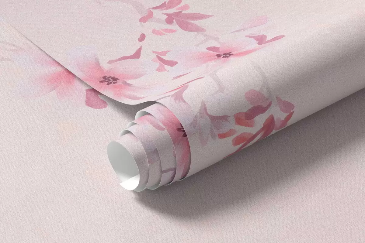 Wall murals Branches with pink blossoms on a soft pastel background Nr. w05129v1