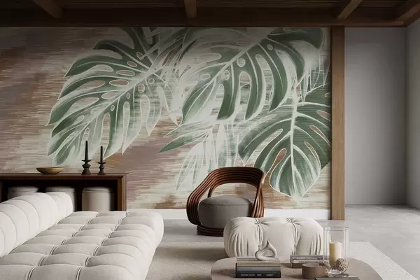 Wall murals Green leaves on a warm textured abstract base Nr. w05130v3