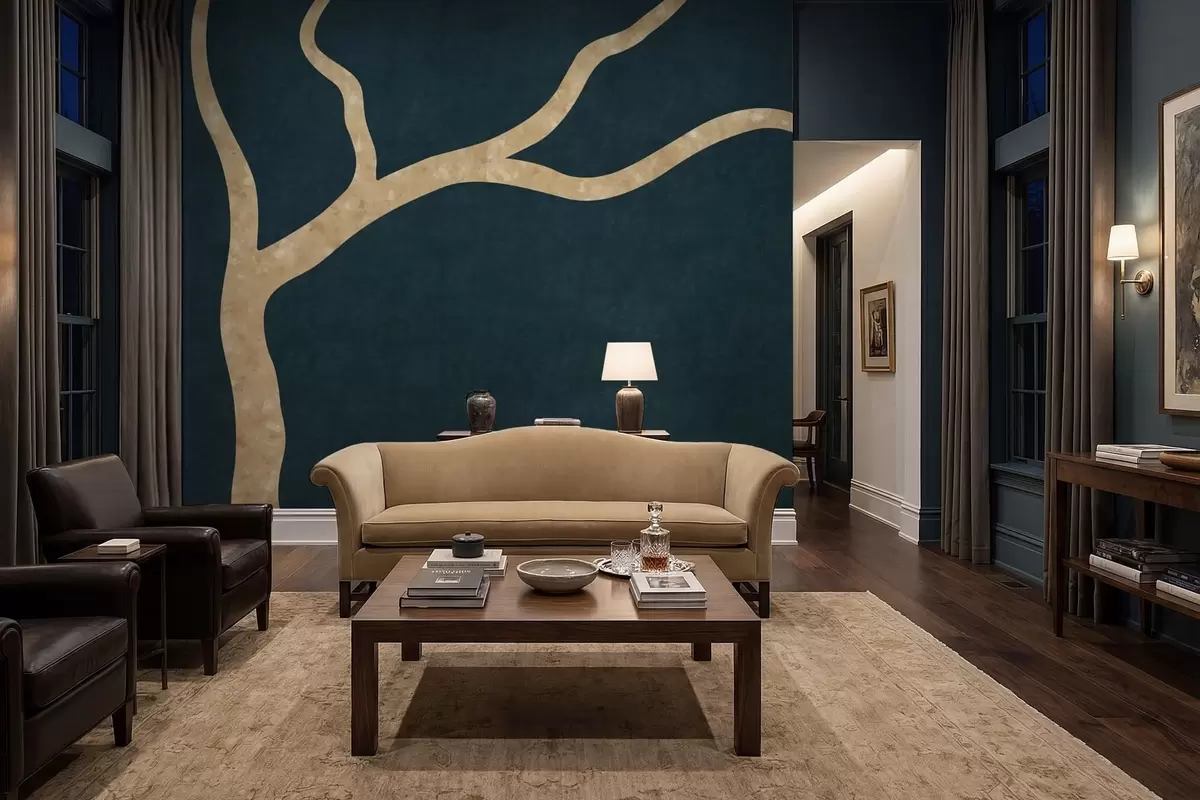 Wall murals Light branch on dark teal background Nr. w05144v3