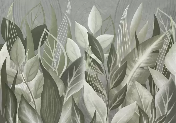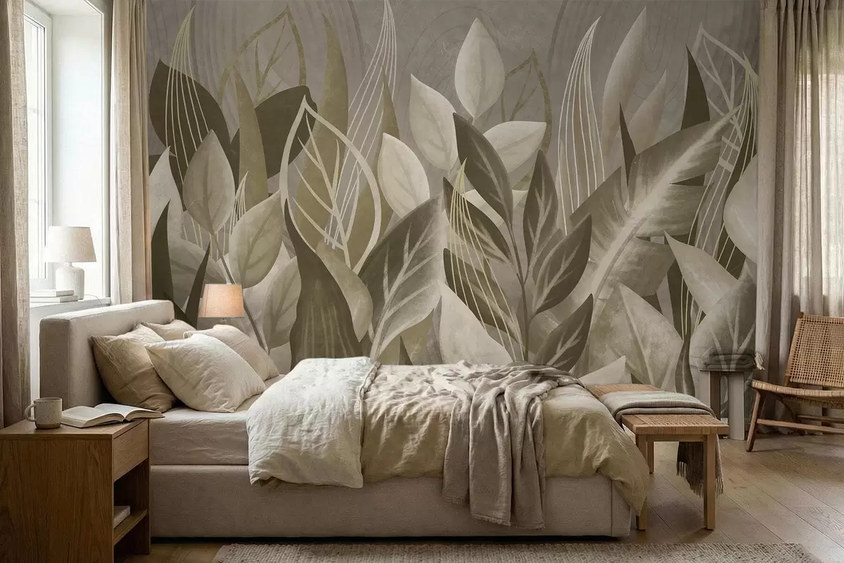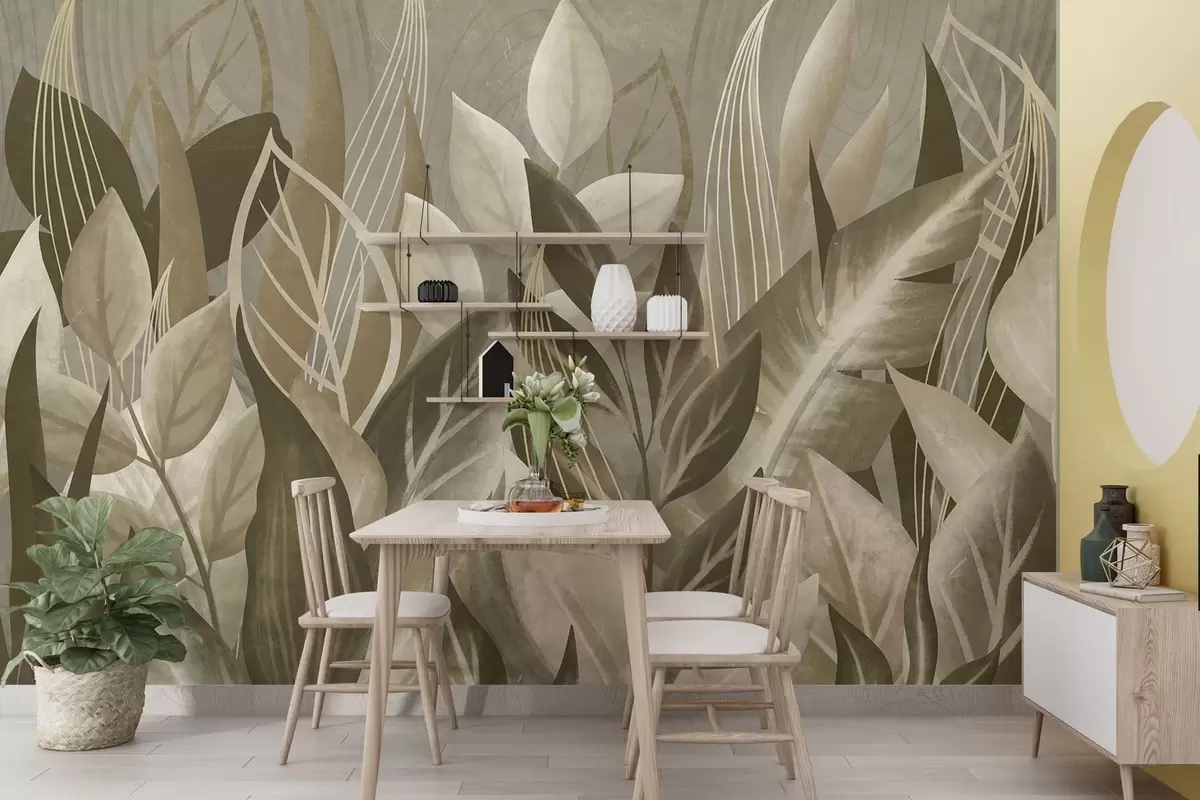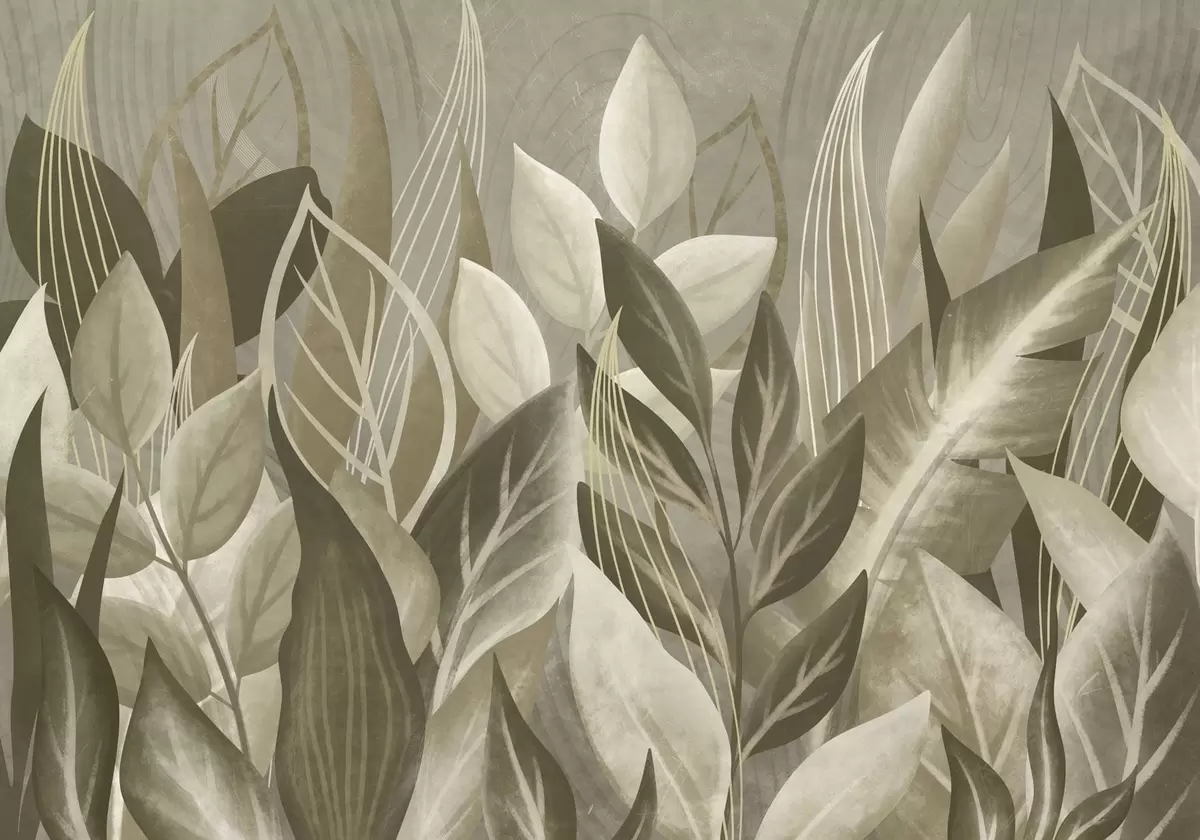 Wall murals Abstract leaves in beige and green tones Nr. w05148