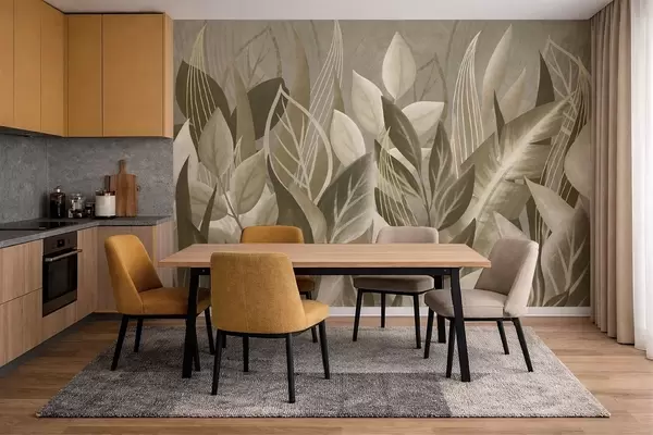 Wall murals Abstract leaves in beige and green tones Nr. w05148