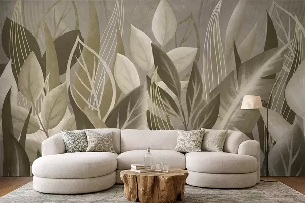 Wall murals Abstract leaves in beige and green tones Nr. w05148