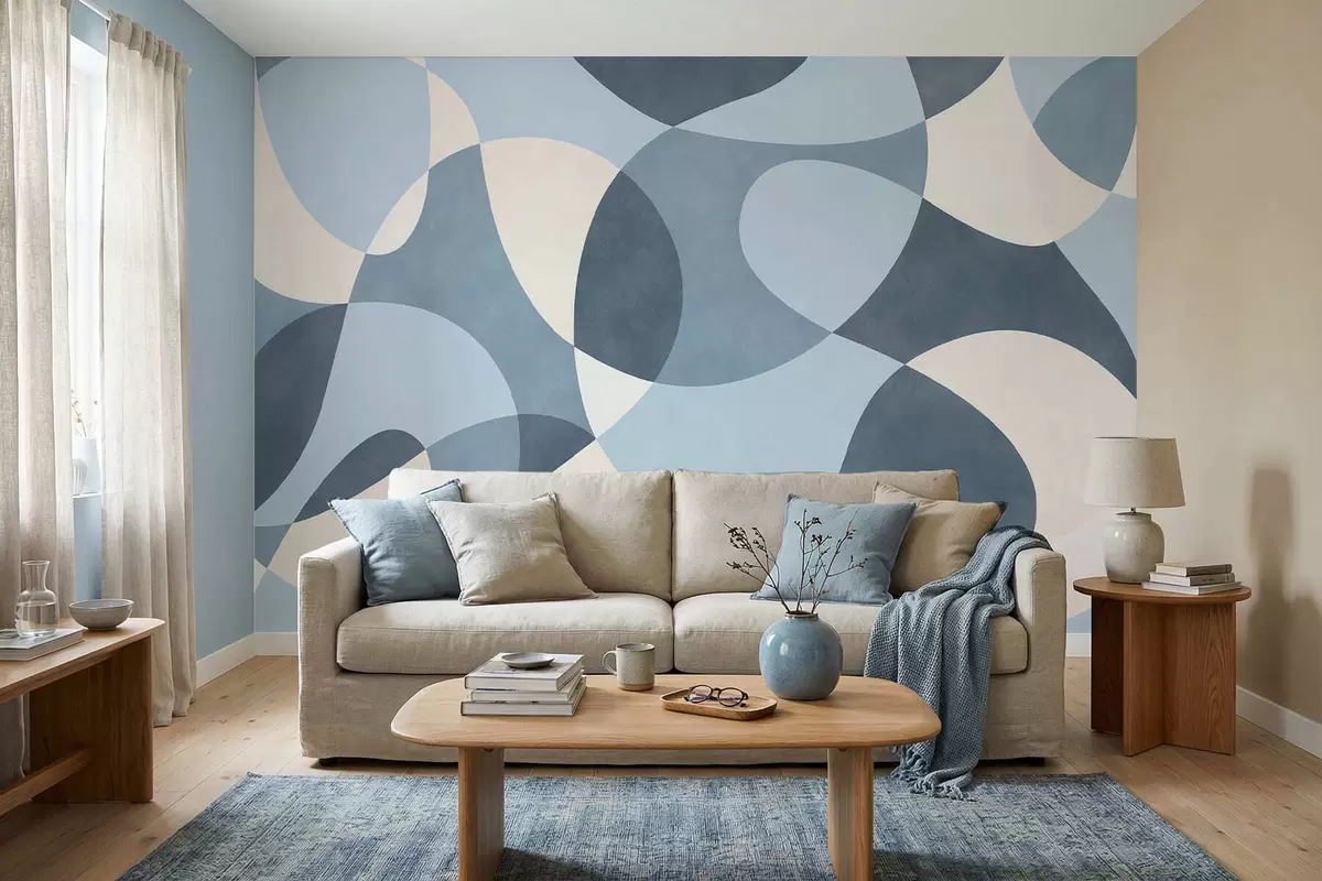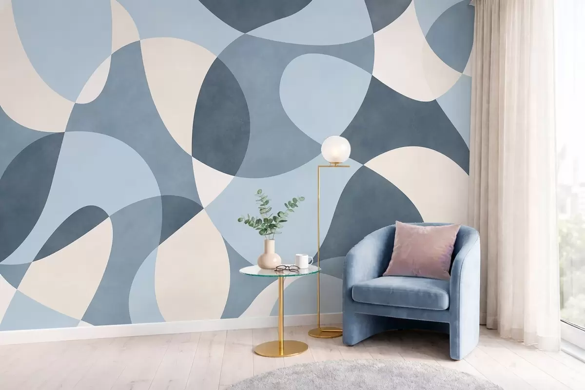 Wall murals Abstract pattern with rounded shapes in blue tones Nr. w05149v2