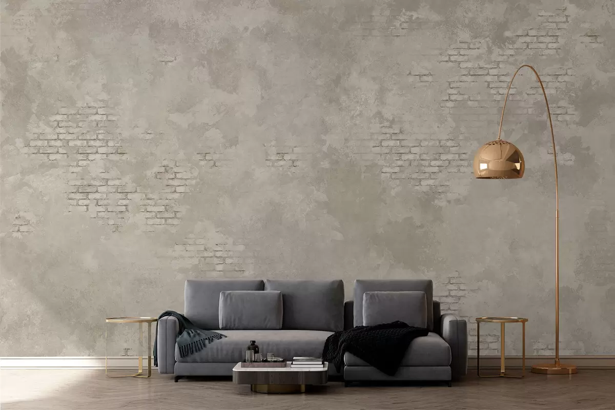 Wall murals Grunge light plaster with exposed brick patches Nr. w05161v1