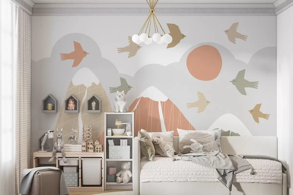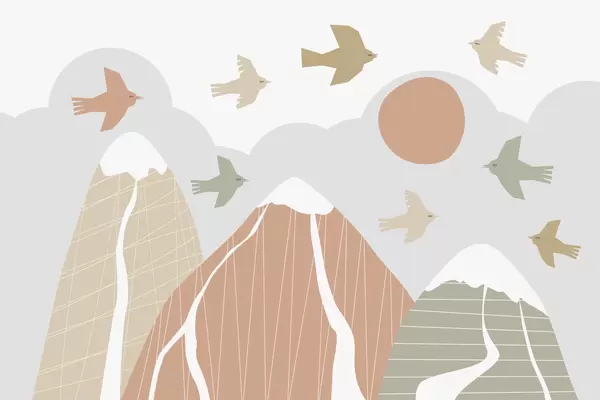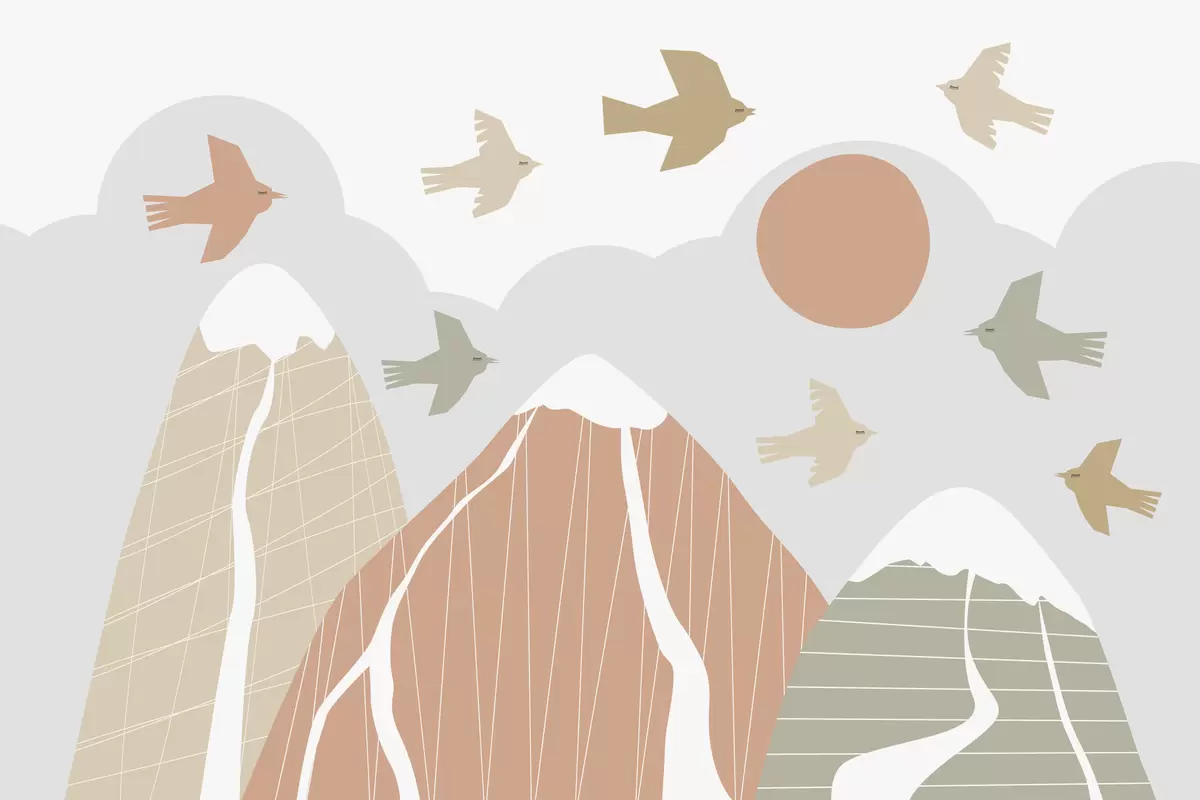 Wall murals Scandinavian mountains and birds Nr. w05166