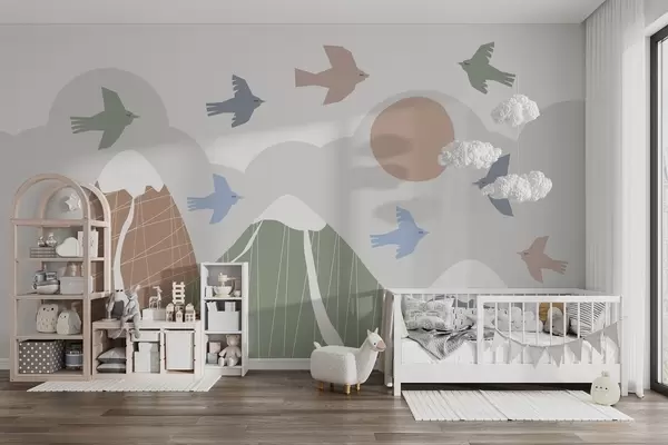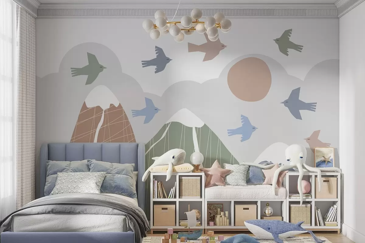 Wall murals Scandinavian mountains and birds Nr. w05166v1