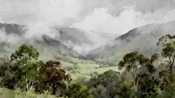 Wall murals Painted landscape in the fog Nr. w05185
