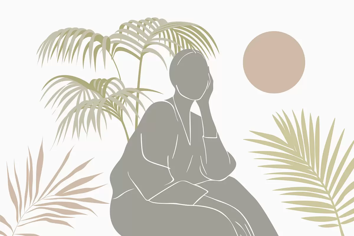 Wall murals Silhouette of a woman and palm leaves Nr. w05190