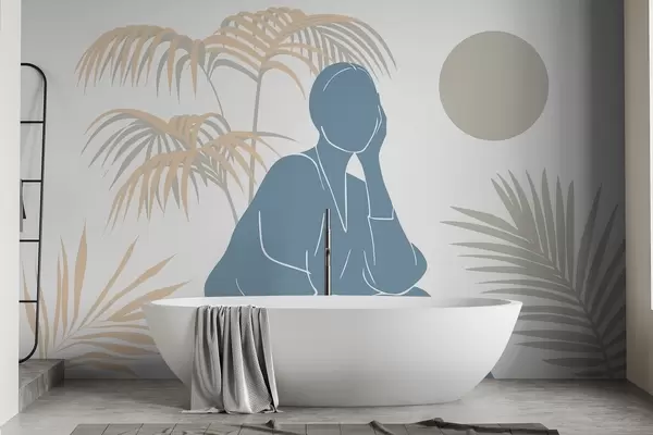 Wall murals Silhouette of a woman and palm leaves Nr. w05190v1
