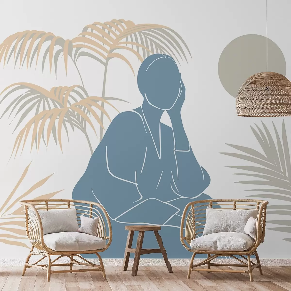 Wall murals Silhouette of a woman and palm leaves Nr. w05190v1