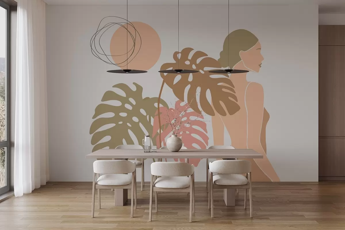 Wall murals Silhouette of a woman near tropical leaves Nr. w05192v1