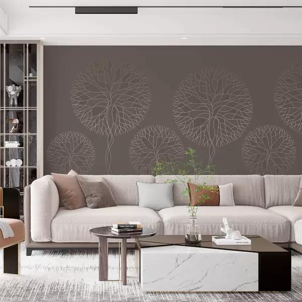 Wall murals Fantasy linear trees with lush crowns in elegant mocha tones Nr. w05213v1