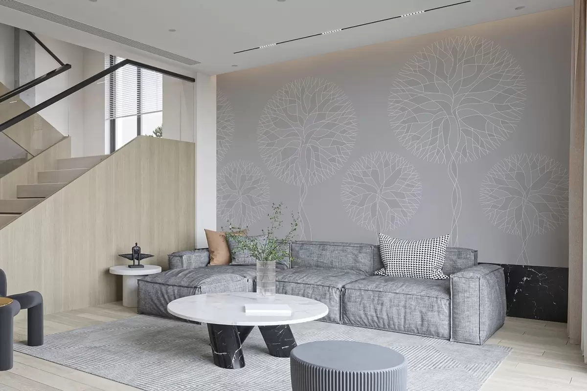 Wall murals Fantasy linear trees with lush crowns in light grey tones Nr. w05213v4