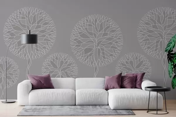 Wall murals Fantasy linear trees with lush crowns in medium grey tones Nr. w05213v5