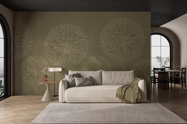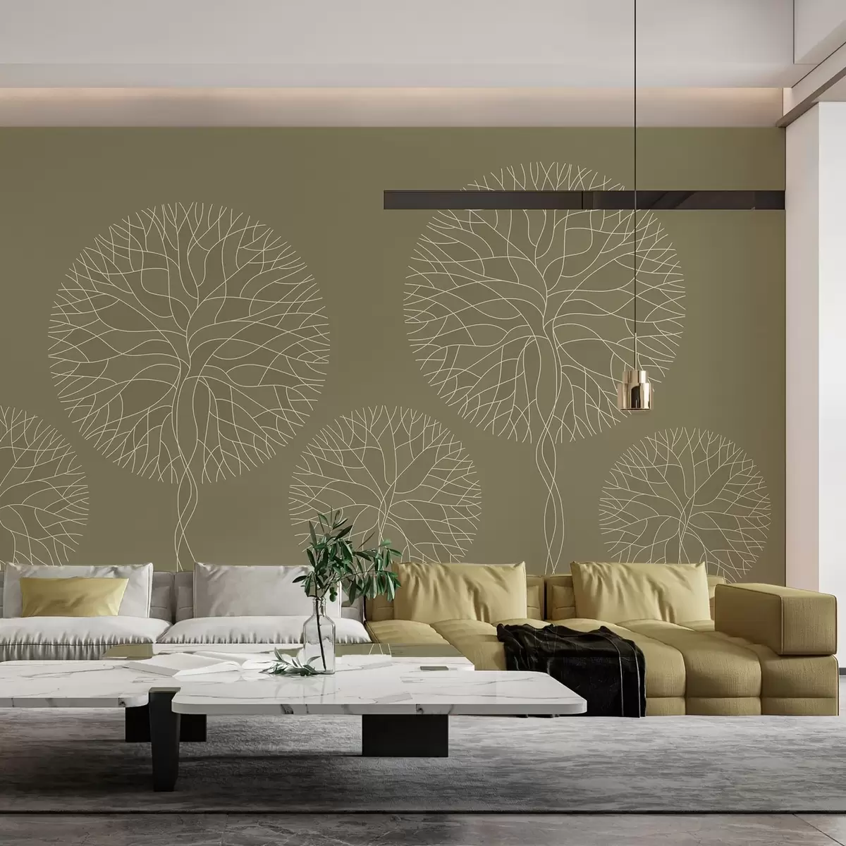 Wall murals Fantasy linear trees with lush crowns in khaki tones Nr. w05213v7