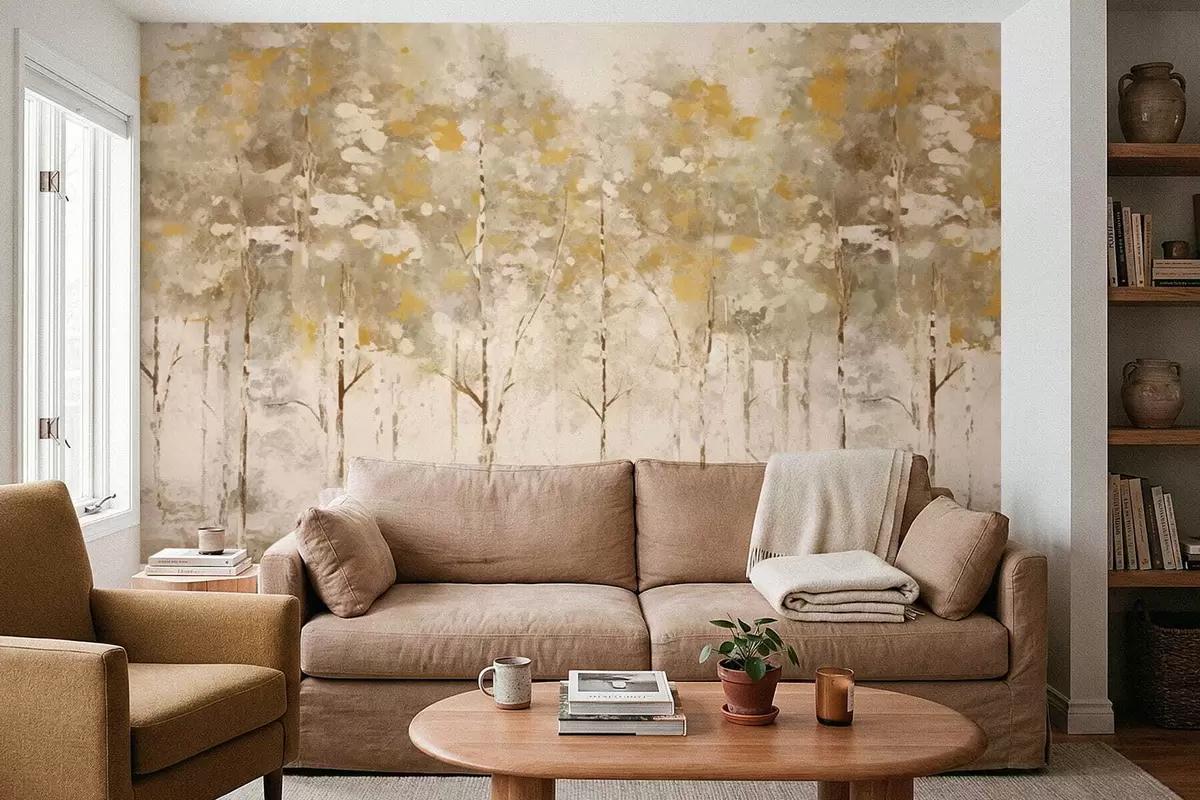 Wall murals Stylized forest with slender trees in warm tones Nr. w05221