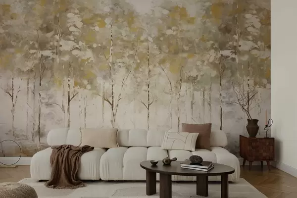 Wall murals Stylized forest with slender trees in warm tones Nr. w05221