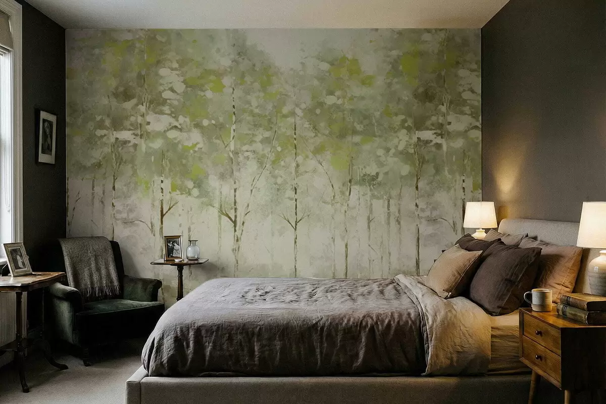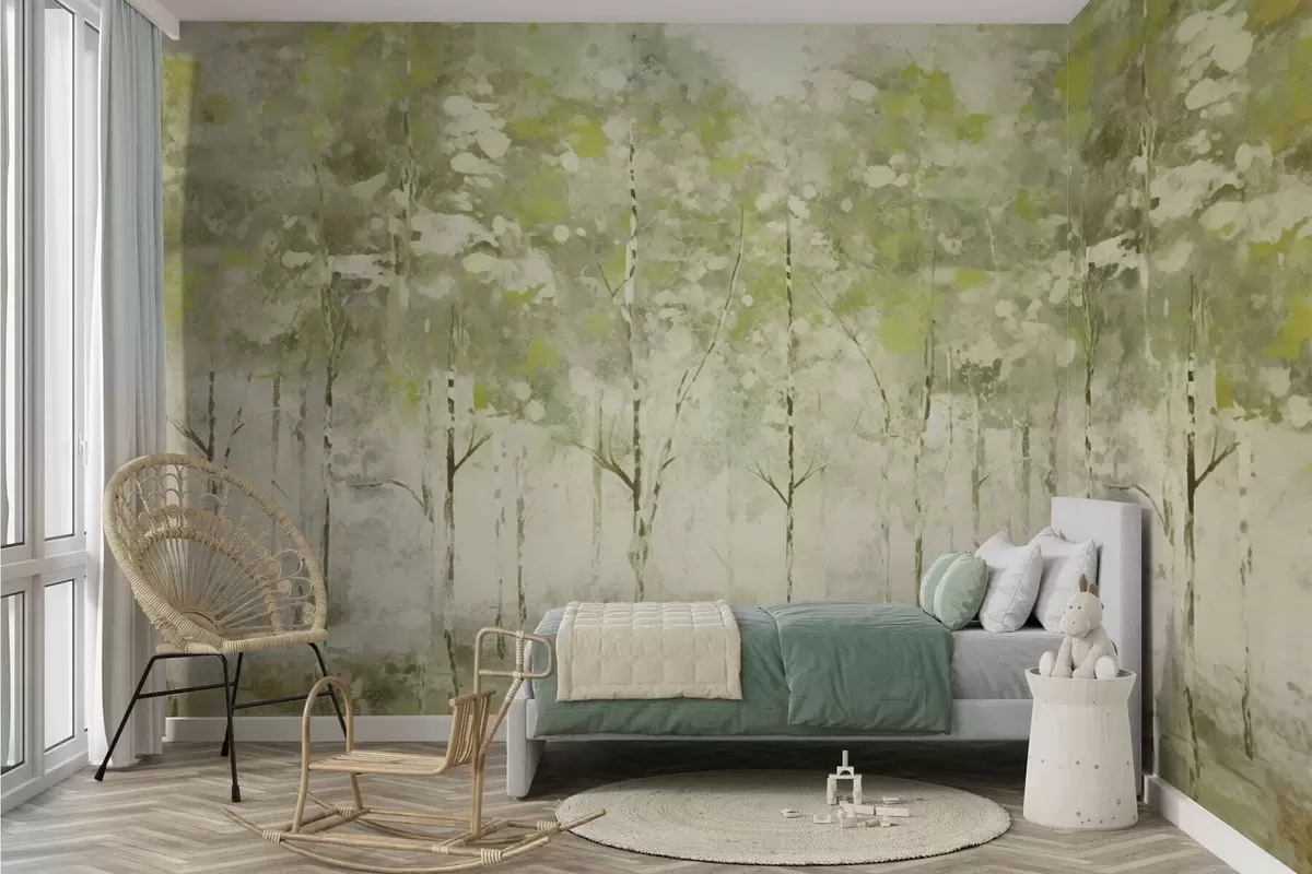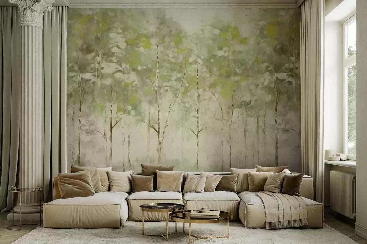 Wall murals Stylized forest with slender trees in green tones Nr. w05221v1