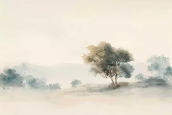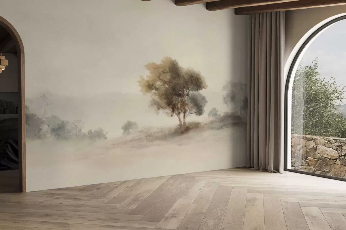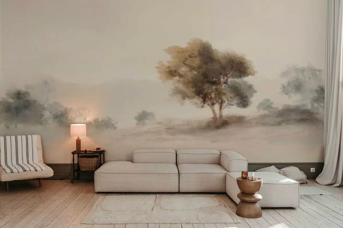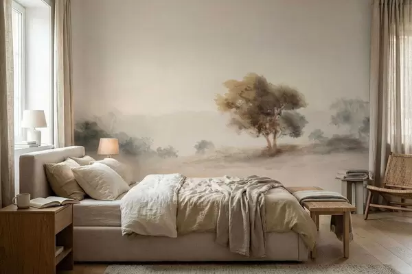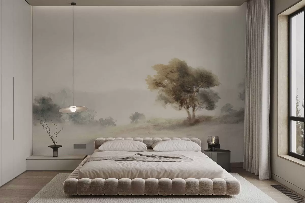 Wall murals Minimalist landscape with a lone tree in mist Nr. w05223