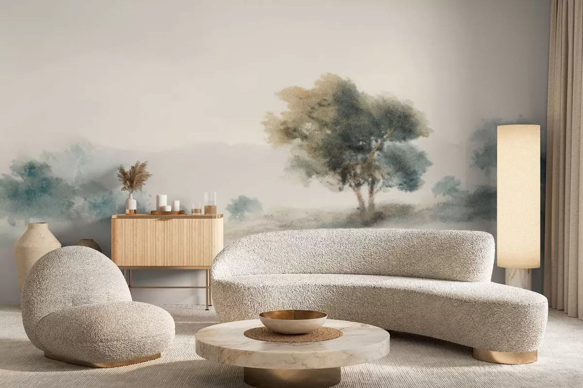 Wall murals Calm landscape with a tree and soft blurred forms Nr. w05223v1
