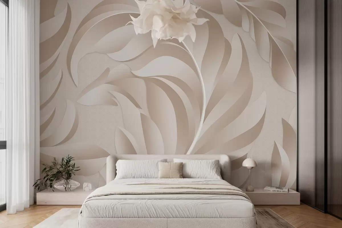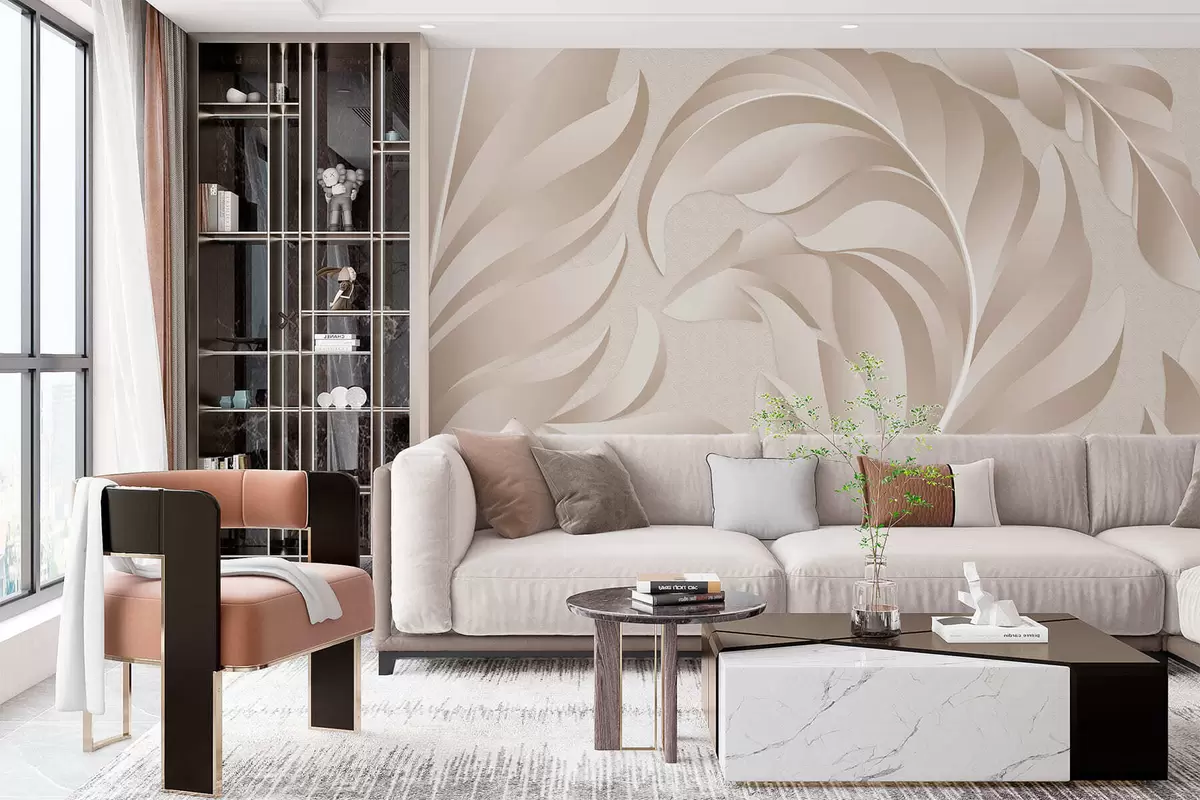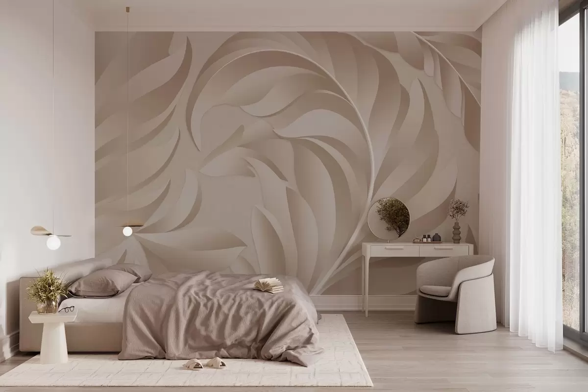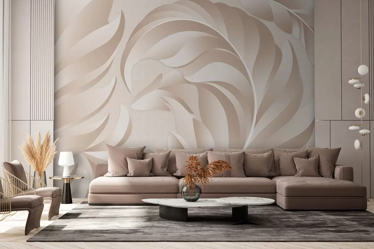 Wall murals large textured feathers in beige and powder shades Nr. w05231