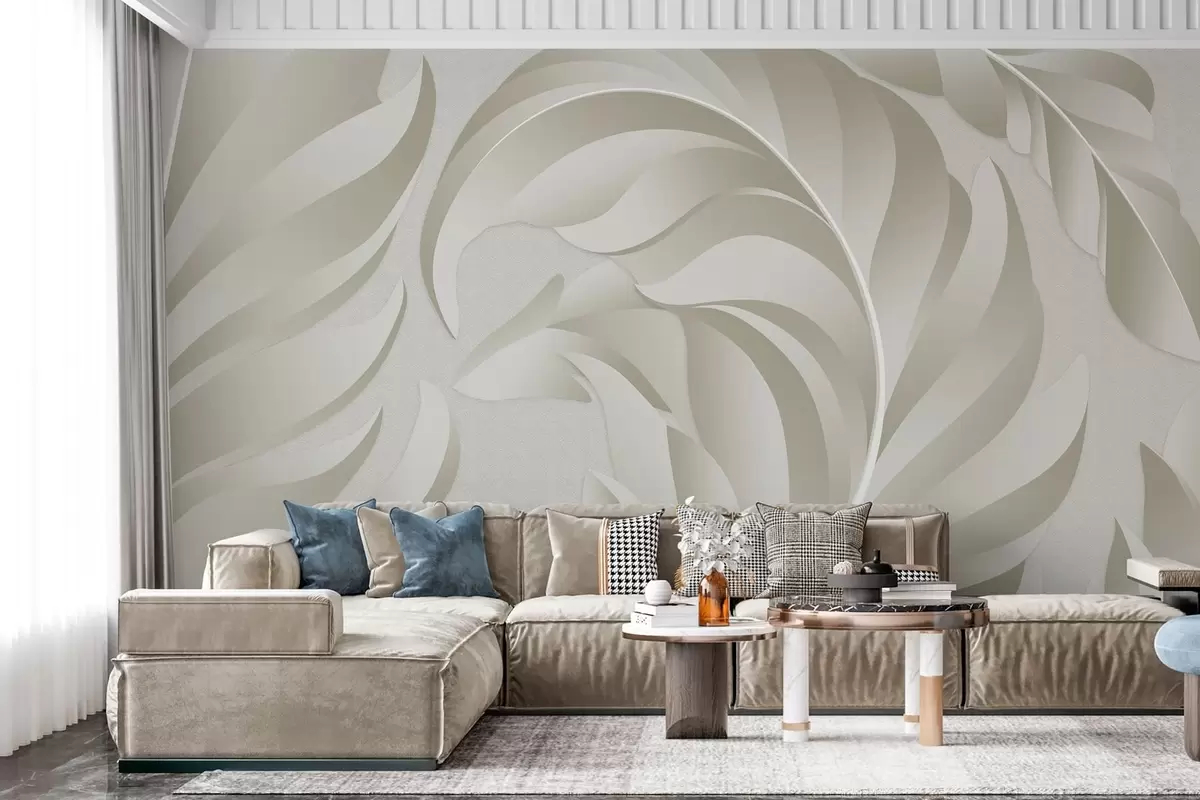 Wall murals large textured feathers in beige and olive shades Nr. w05231v1