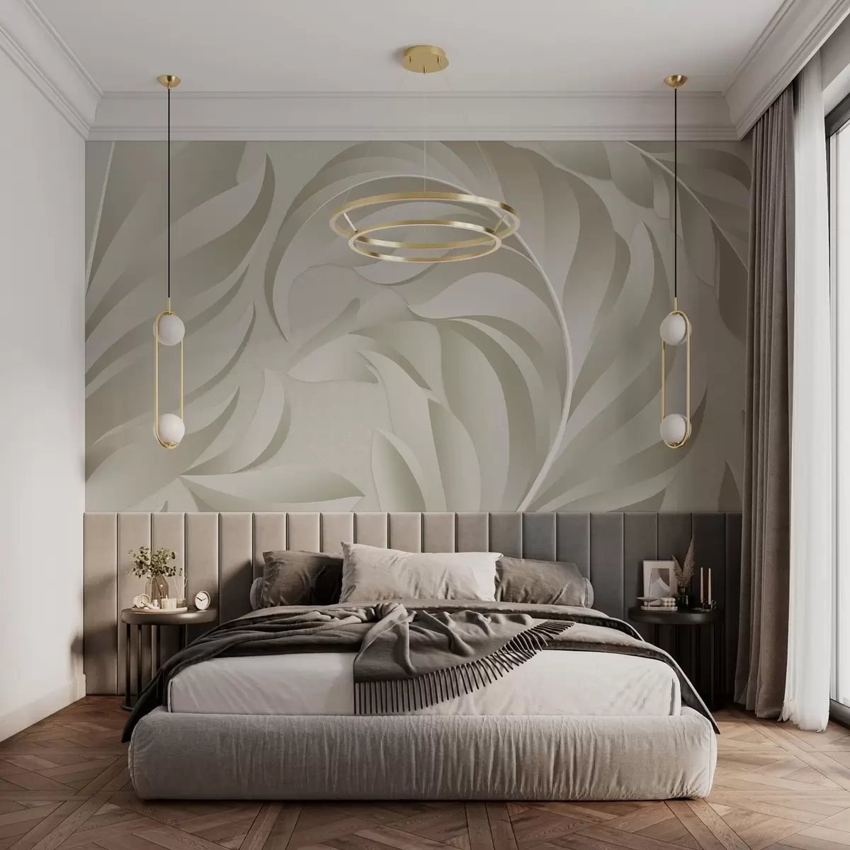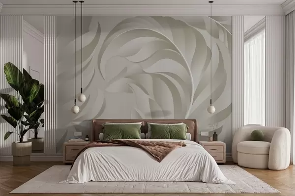 Wall murals large textured feathers in beige and olive shades Nr. w05231v1