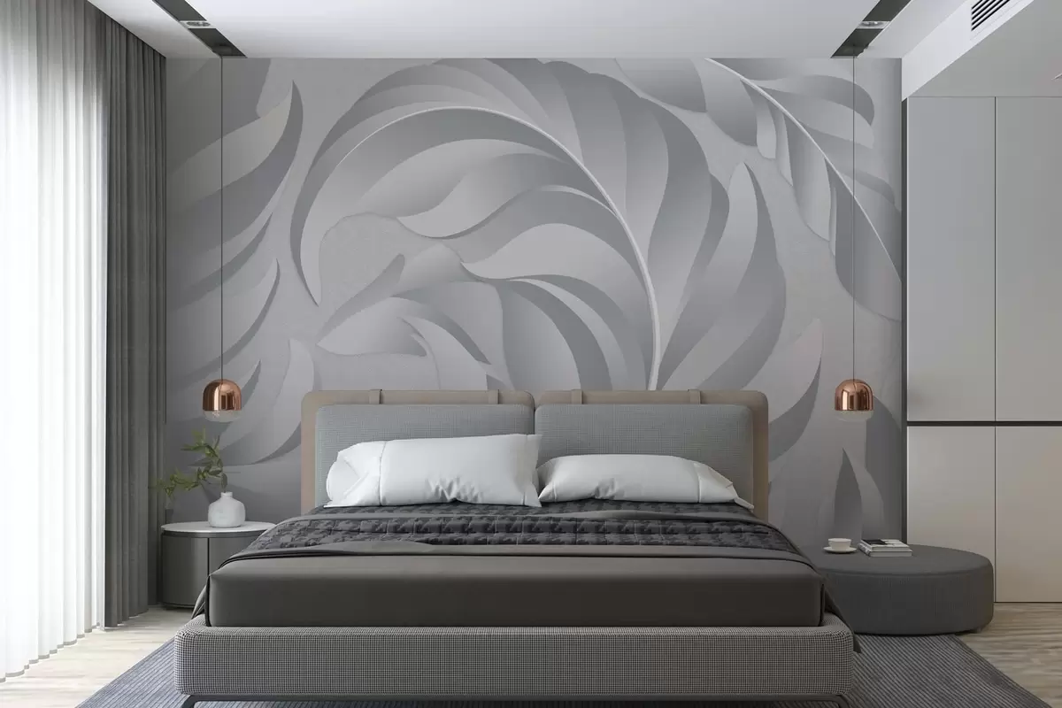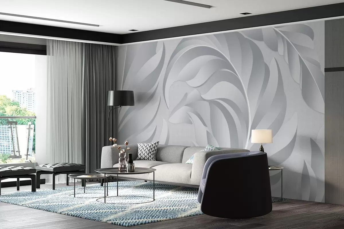 Wall murals large textured feathers in shades of grey Nr. w05231v3