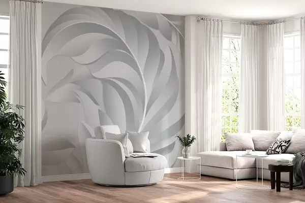 Wall murals large textured feathers in shades of grey Nr. w05231v3